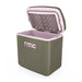 ESPECIFICACIONES TÉCNICAS: • Capacidad: 8 cuartos (7.6 litros) • Capacidad para bebidas: 12 latas con hielo • Dimensiones exteriores: 35.6 cm x 25.4 cm x 27.9 cm • Dimensiones interiores: 25.4 cm x 15.2 cm x 20.3 cm • Peso (vacía): 4.1 kg • Material: Polietileno rotomoldeado con protección UV • Retención de hielo: Hasta 40 horas en condiciones óptimas